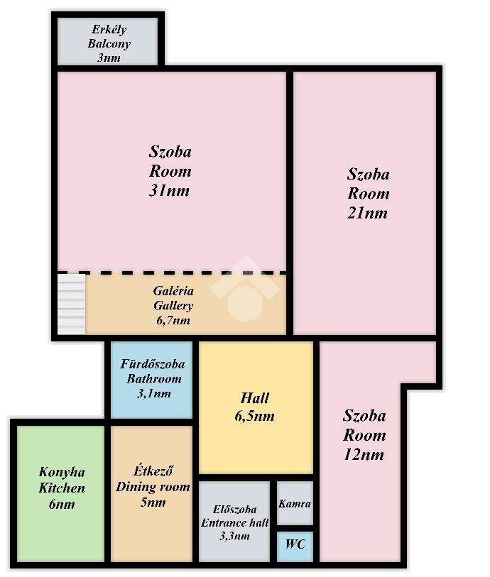 A lakás elrendezése kifejezetten kedvező: a 31 m²-es, tágas és galériás nappalihoz erkély kapcsolódik, amelyre kényelmesen kifér egy asztal és két szék – ideális helyszín egy reggeli kávéhoz vagy egy esti borozáshoz. A nappali és az egyik, 21 m²-es hálószoba a parkra, illetve a Duna irányába néz, míg a másik, 12 m²-es szoba, a konyha és az étkező a csendes belső udvarra. A lakás nagy belmagasságának köszönhetően a terek szellősek és otthonosak. Keleti fekvésű, és mivel közvetlen közelében nincs másik társasház, egész nap világos és barátságos hangulatot áraszt.