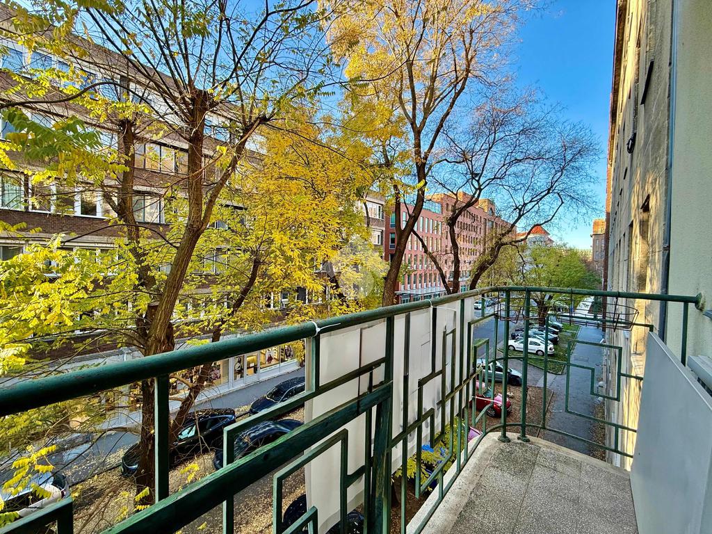A lakás 300 cm-es belmagassága, keleti–nyugati tájolása és tágas, jól szellőző terei igazán otthonos hangulatot adnak. A körbejárható alaprajz miatt különösen jól alakítható: a vizesblokkok a központi részen találhatók, míg a két szoba a lakás legtávolabbi pontjain helyezkedik el, így a középső tér könnyedén amerikai konyhássá alakítható. Így akár két nagy méretű, saját fürdőszobás hálószoba is kialakítható. A lakáshoz erkély is tartozik, mely a fás utcára néz – kellemes, zöldre néző kilátással és a pincehelyiség szintén a lakás része.