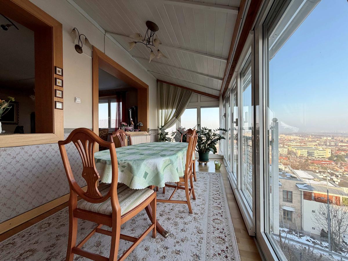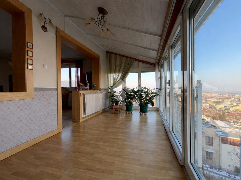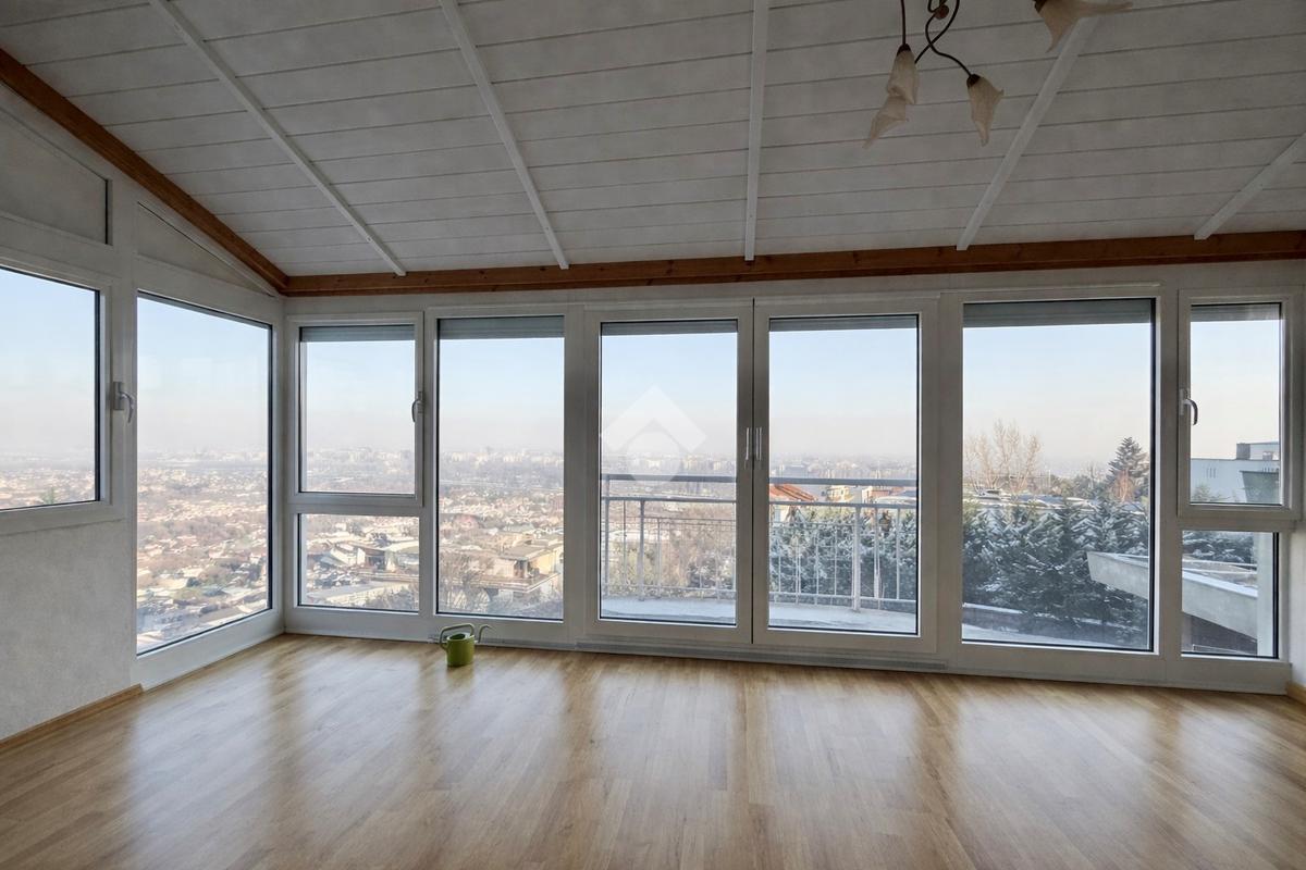 Az ingatlan keleti és északi fekvésű, ennek köszönhetően világos, ugyanakkor kellemes klímájú. A panorámás kilátás a környező zöldövezetre és a városra különleges, nyugodt atmoszférát teremt.